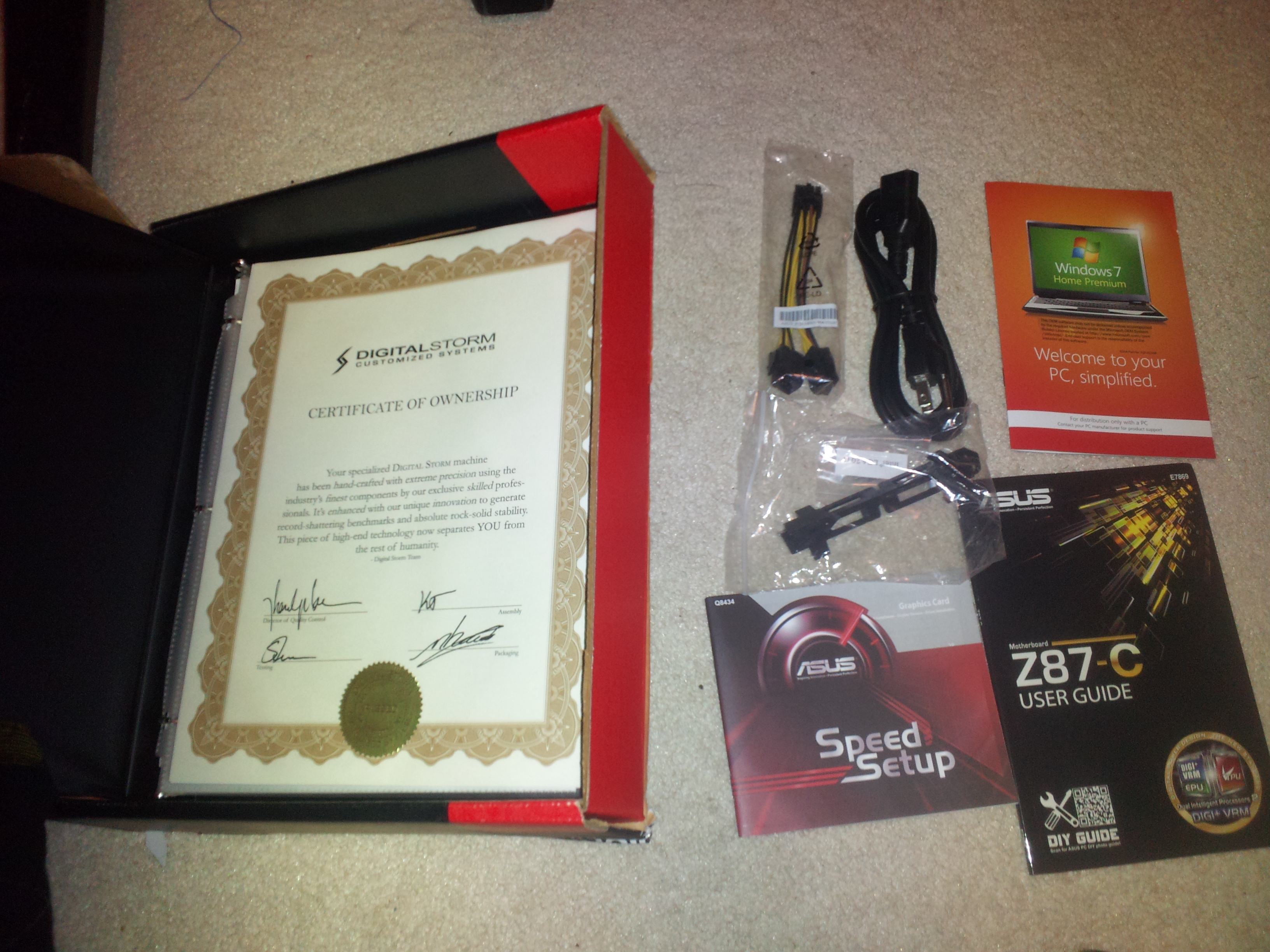 Clearly they take pride in their work, since they even created a Digital Storm binder and certificate of authenticity.